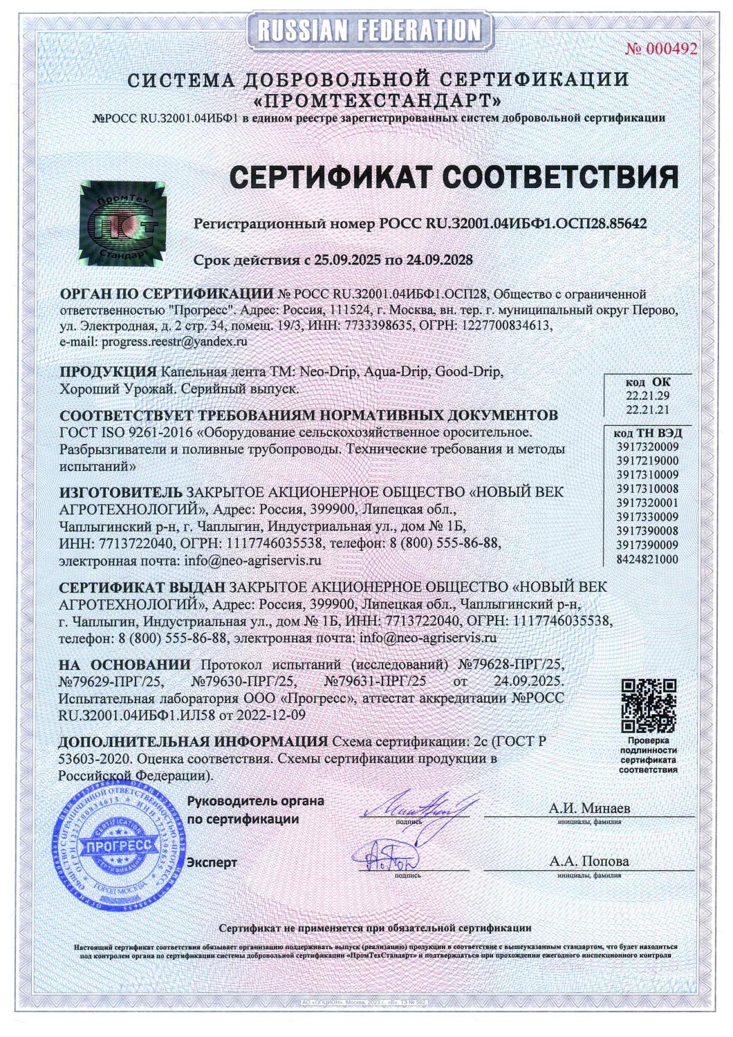 Декларации о соответствии: Упаковка для овощных культур Тянь-Жень