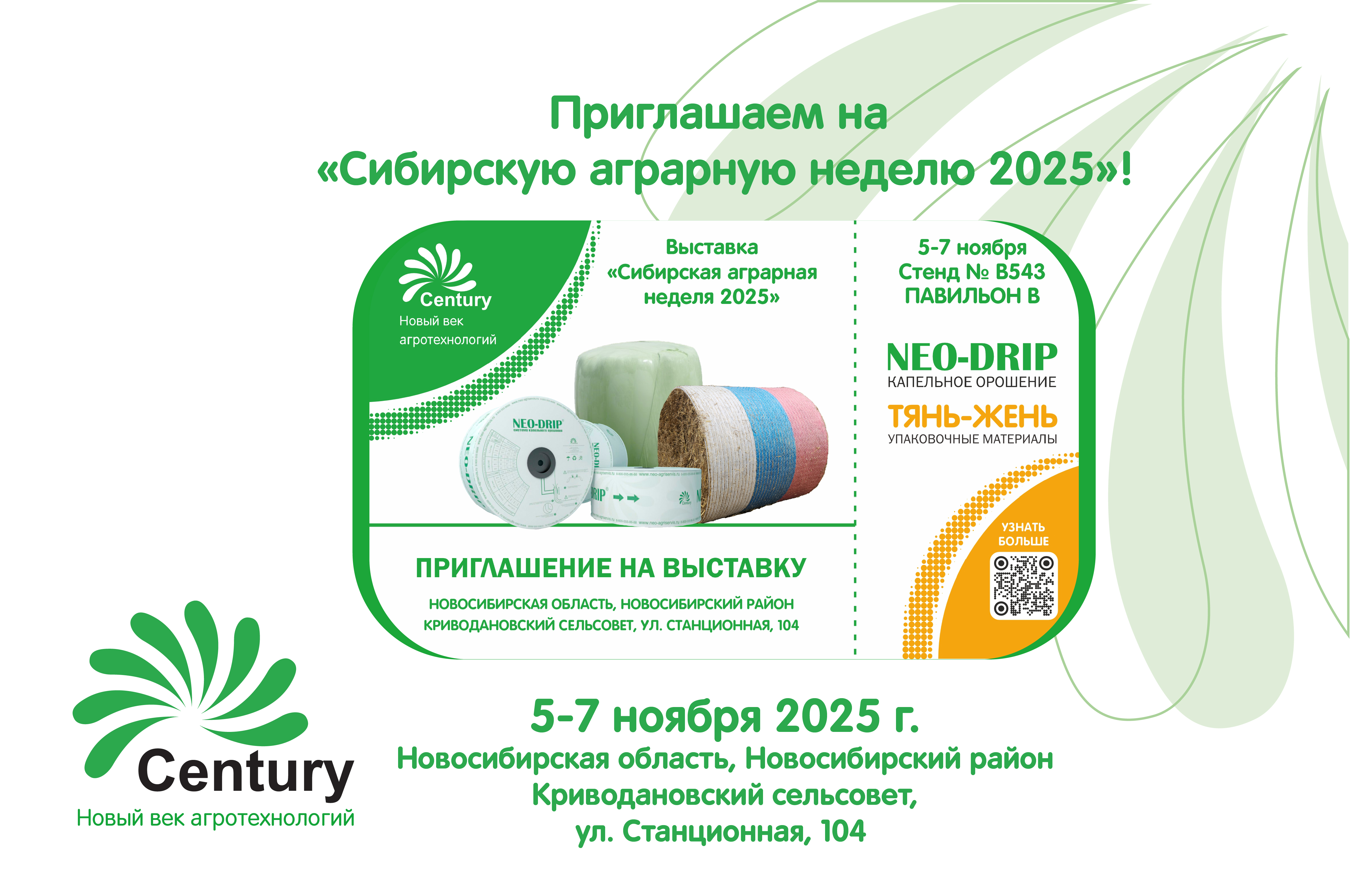 Компания "Новый век агротехнологий" приглашает Вас посетить Международную агропромышленную выставку "Сибирская Аграрная Неделя 2025", которая пройдёт 5 - 7 ноября 2025 г..