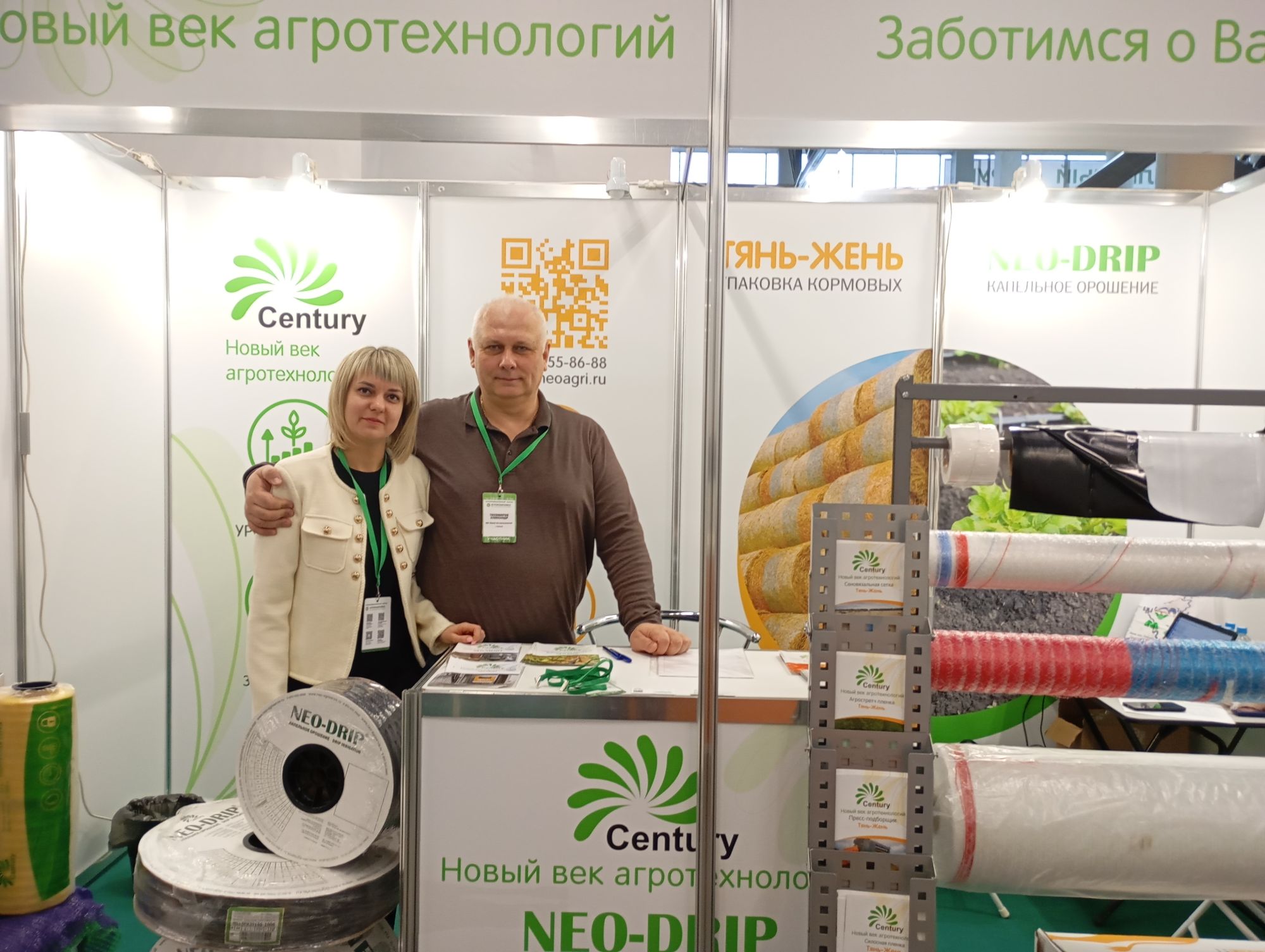 - Тянь-Жень — премиальная линейка упаковочных материалов для кормовых и овощных культур. В экспозиции были представлены сеновязальная и паллетная сетки, высококачественный агрострейч, силосные пленки, а также прочные сетчатые мешки, обеспечивающие сохранность продукции на всех этапах хранения и транспортировки;