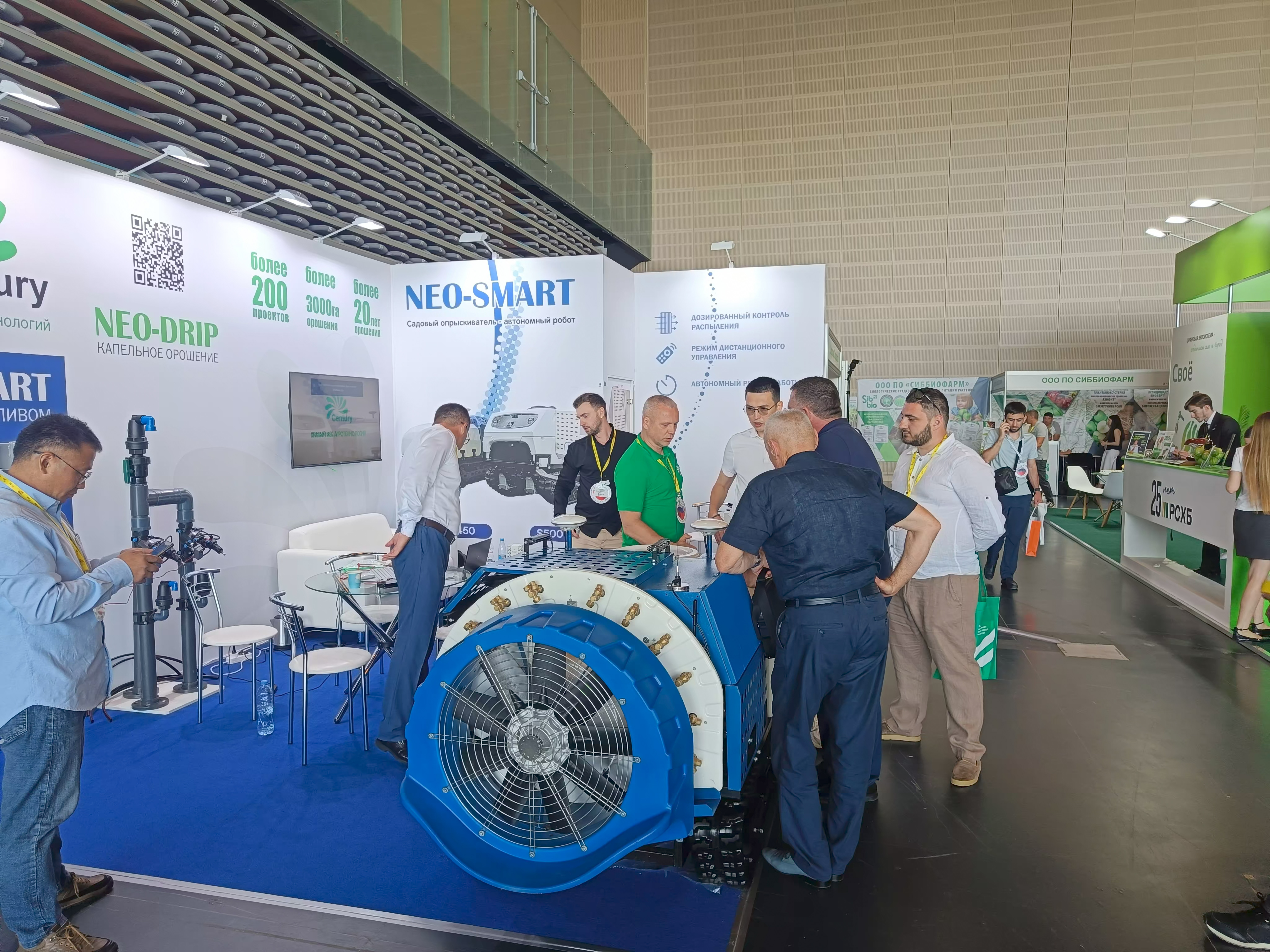 На стенде компании «Новый век агротехнологий» был представлен широкий ассортимент, включая робот-опрыскиватель NEO-SMART и современные системы капельного орошения. Рынок сельскохозяйственного орошения продолжает активно развиваться, и мы будем использовать преимущества бренда NEO-SMART.