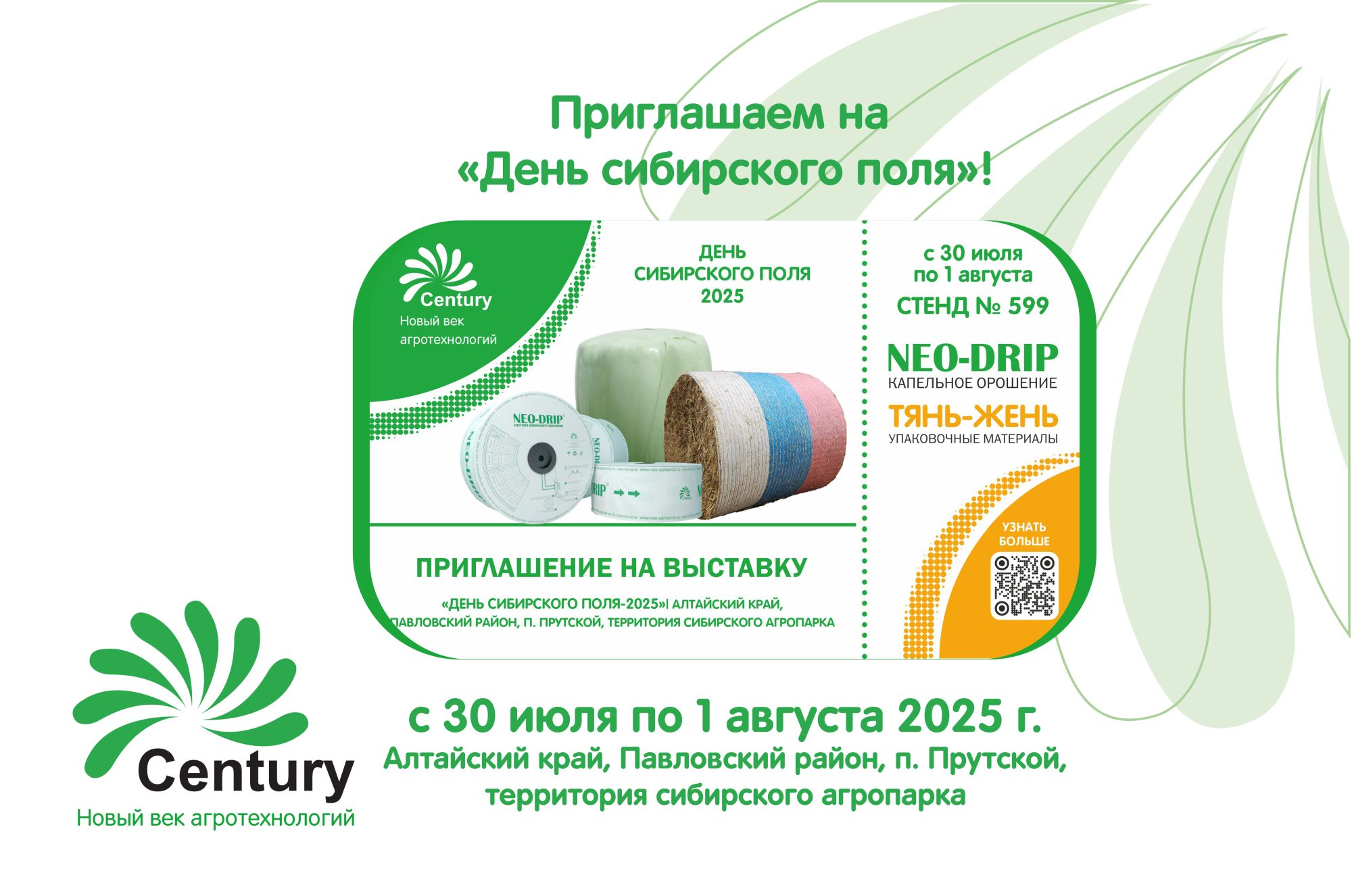 На выставке компания "Новый век агротехнологий" будет ждать Вас на стенде № 599!