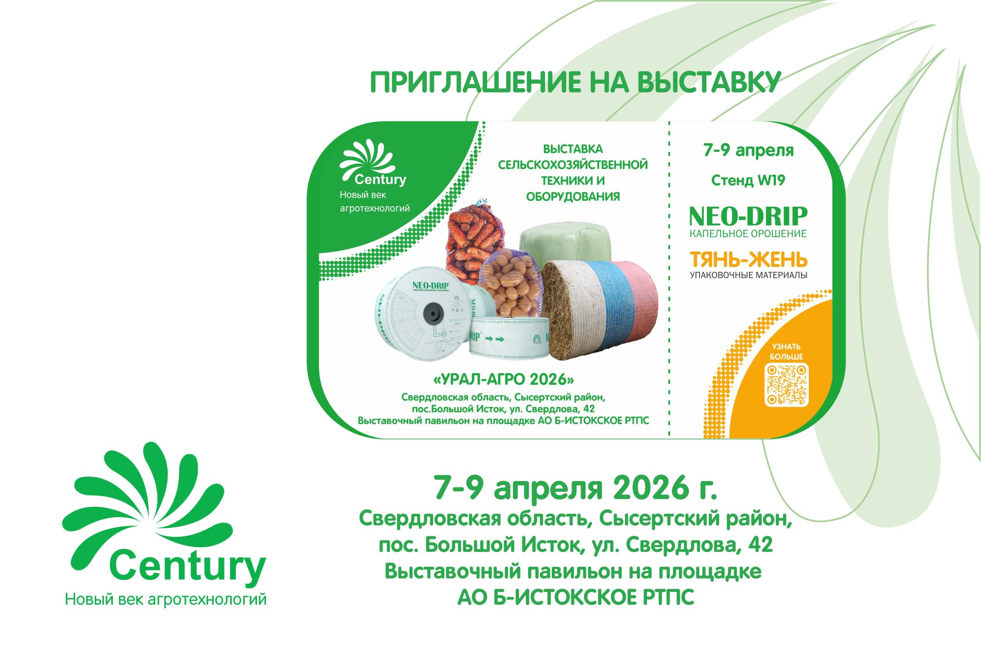 Компания «Новый век агротехнологий» приглашает вас принять участие в выставке сельскохозяйственной техники и оборудования "Урал - Агро 2026", которая состоится 7 - 9 апреля 2026 года в Свердловской области, п. Большой Исток, ул. Свердлова, 42 (ВК АО "Б - Истокское - РТПС") и посетить наш стенд W19.